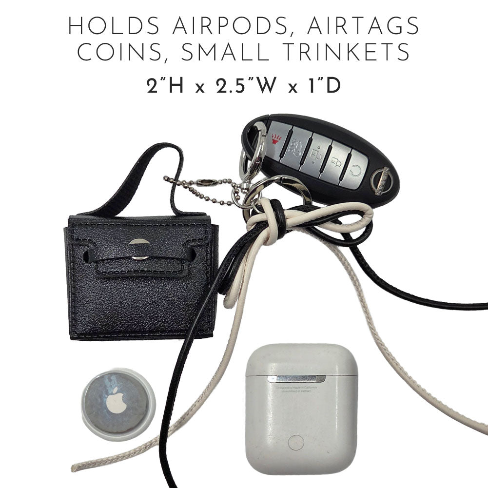 - The fun little bag actually works as a holder for your small items, such as an Air Tag, Ear Buds, coins and more (not included)!