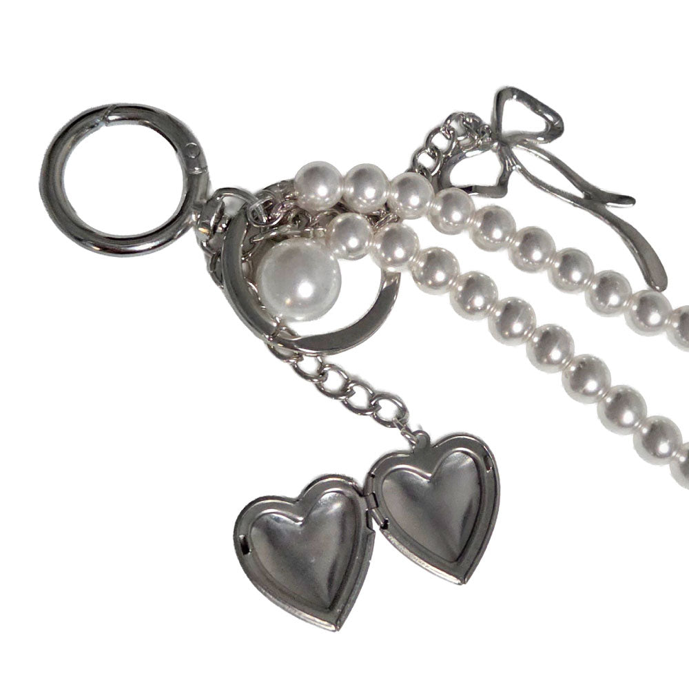 - Simple and classy our pearl and silver charm includes a heart charm is a locket. What a great gift item, with a picture of a loved one inside!